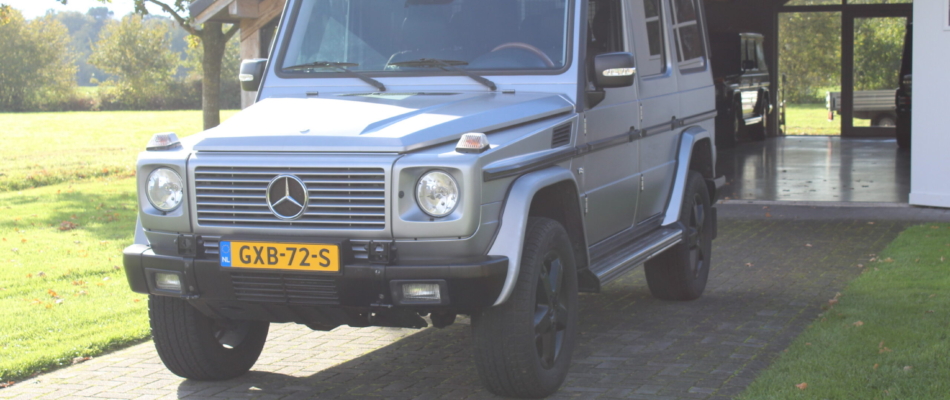 Excellente G500 in “Grand Edition” uitvoering, herkenbaar aan diverse interieurdetails, getint glas af fabriek, Designo leder en speciaal voor deze uitvoering ontwikkelde velgen. Dit exemplaar is bovendien uitgevoerd in de fenomenale kleur “Magno Grau” mat grijs, een kleur die zeldzaam en stijlvol, duimpjes omhoog krijgt! Een ultieme youngtimer die zowel gekoesterd als gebruikt kan worden! Technisch nagekeken en voorzien van originele EU koplampen en knipperlichten. Technisch up to date, voorzien van onderhoudshistorie en 2 sleutels.